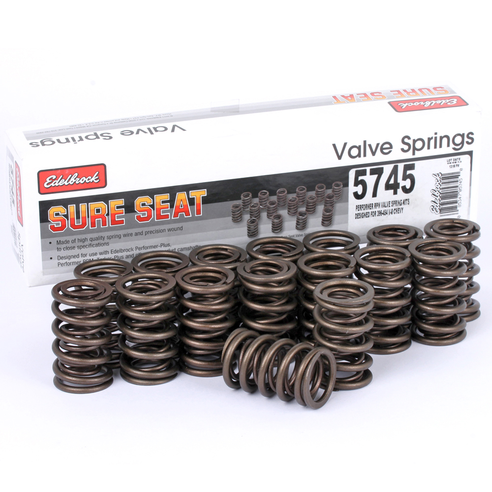 Valve springs 1.500/.805 (1.975"-135lbs) (1.480"-320lbs) (coil bing 1.150") dual spring suit hydraulic tappet cam (set of 16) Edelbrock 5745 Valve Springs