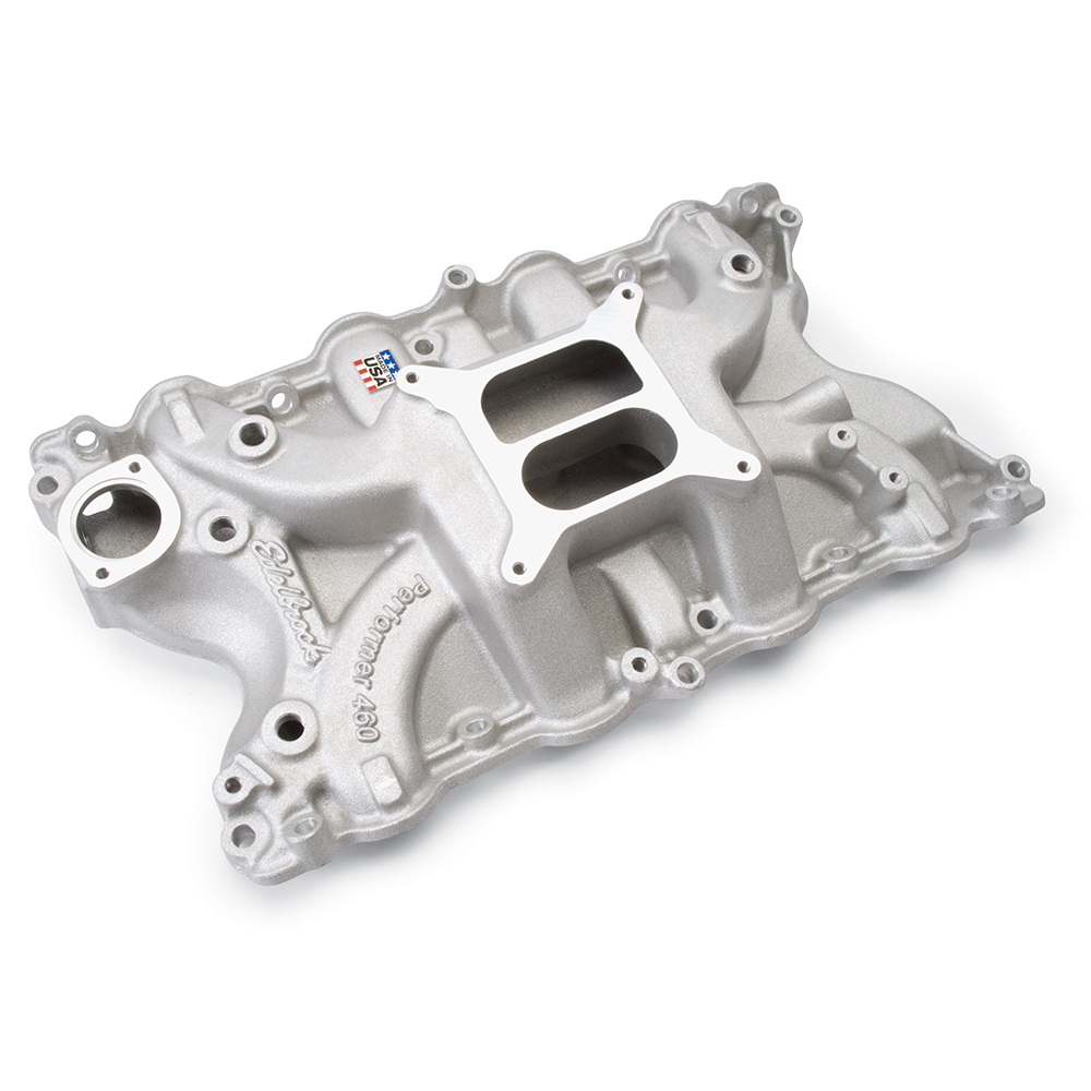 Edelbrock Performer 460 Intake Manifold for Big-Block Ford 429/460 V8 Engines. Will Not Fit Cobra Jet Heads or OEM 4-bbl Carb. Accepts 4150-Style Square-Bore Carburetors. Non-EGR. Will not fit 1988 and later models.