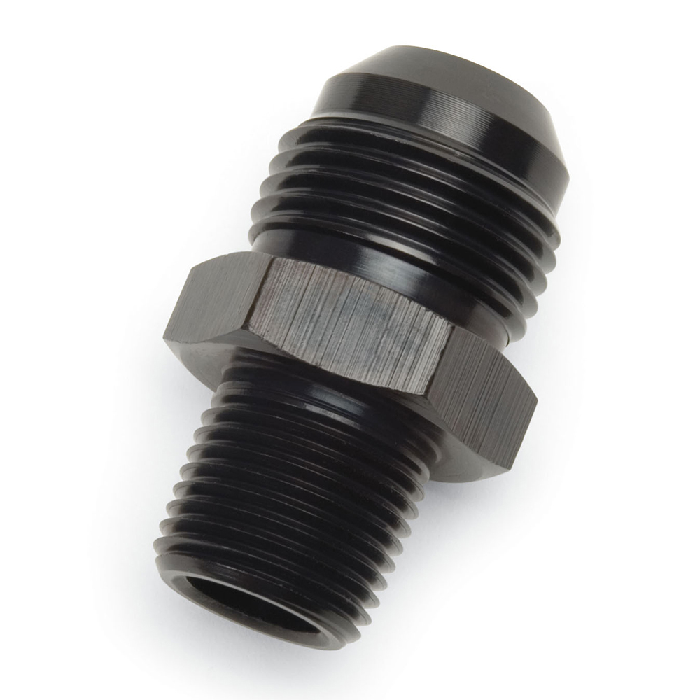 Fitting -8AN to 3/8 NPT alloy adapter black Russell USA (meet D.O.T FMVSS-571.106 requirements)