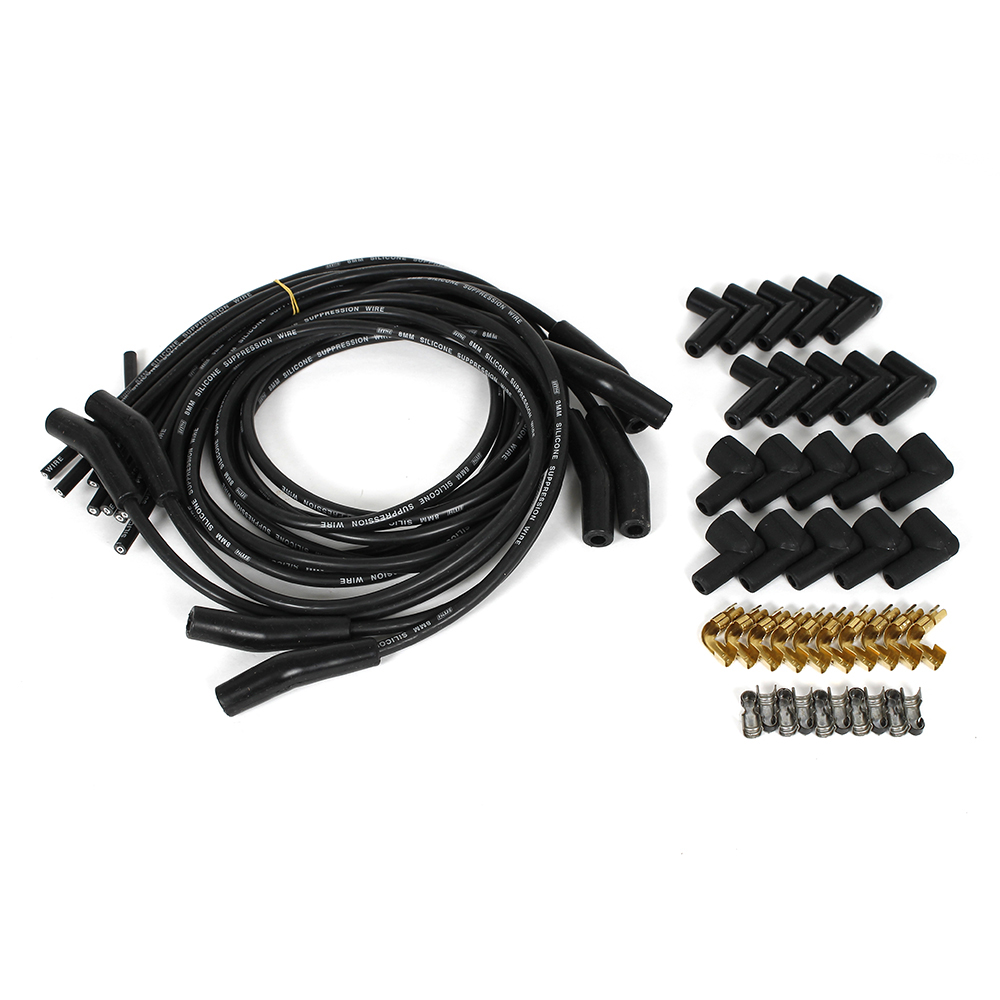 1 - M&H Ignition Wire Kit 9.8mm universal 8 cylinder 45 degree plug boot (Black)