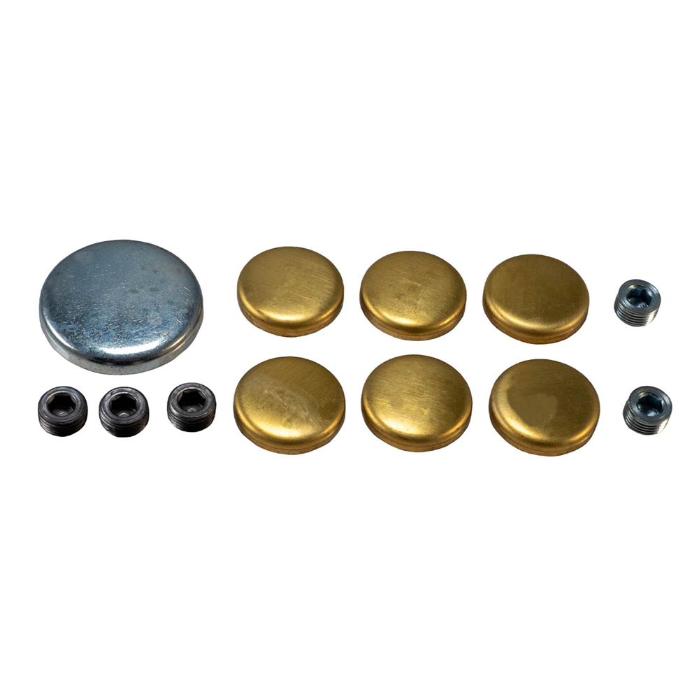 Frost plug kit Ford 302ci, 351ci, 400ci Cleveland brass Pioneer PE-109-BR ( contains 1x 2 1/4" cup steel, 6x 1 1/2"cup, 5x 5/8" steel npt blanks )
