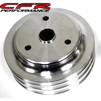Pulley alloy Chev SB 1969-85 long crank triple groove 6-9/16" dia 2-3/4" deep machined aluminium finish CFR Performance HZ-9486-M