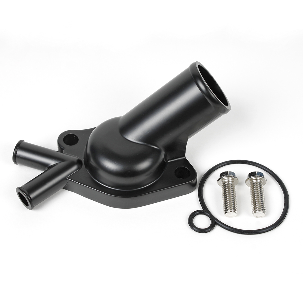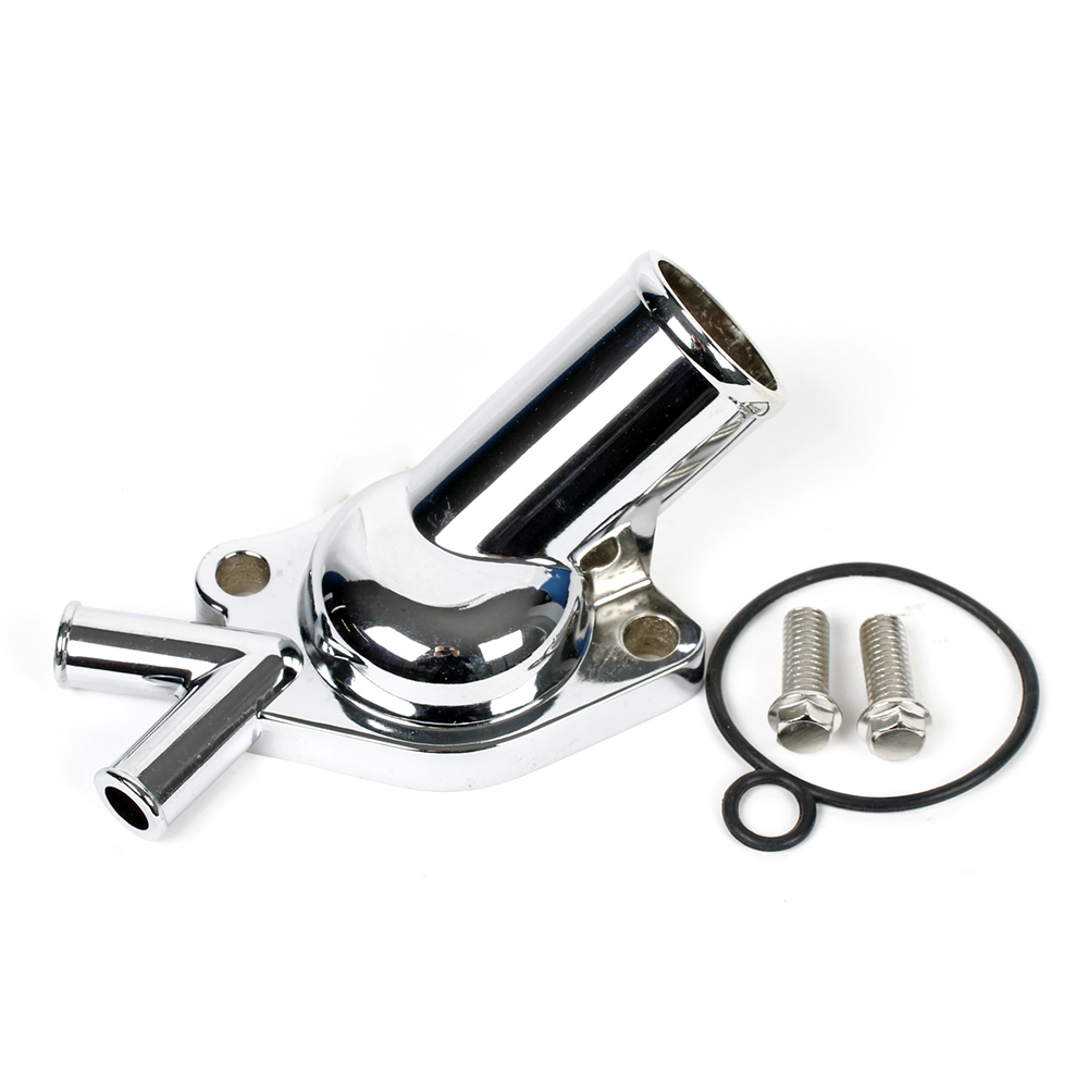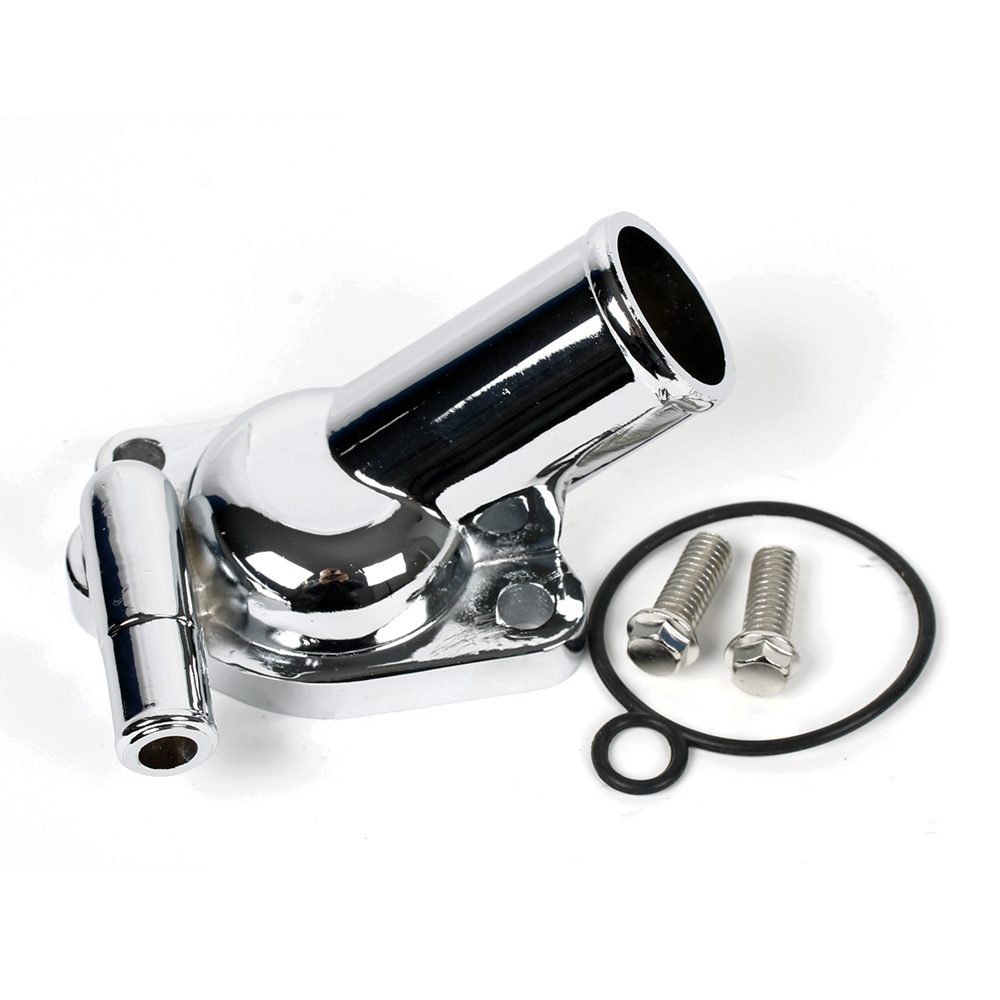 Water neck / Thermostat housing Holden 253ci, 308ci V8 45 degree cast chromed alloy dual heater outlet, o'ring gasket and bolts supplied M&H