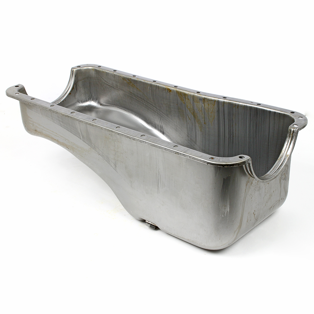 Stock capacity pan fits most front sump production chassis except Mustang II. DOES NOT COME WITH OIL PUMP PICK UP.