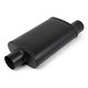 Exhaust muffler offset in - centre out 3.0" mild steel, packed, black finish (20" total length, 14" body length, 9" wide 4.0" thick)