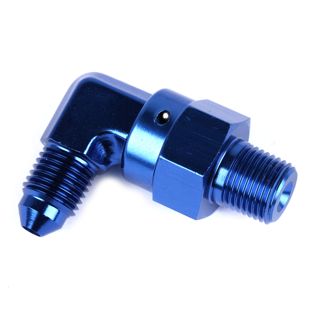 Fitting -3AN to 1/8 npt 90 degree male swivel to male blue *** Not for use in Brake applications ***