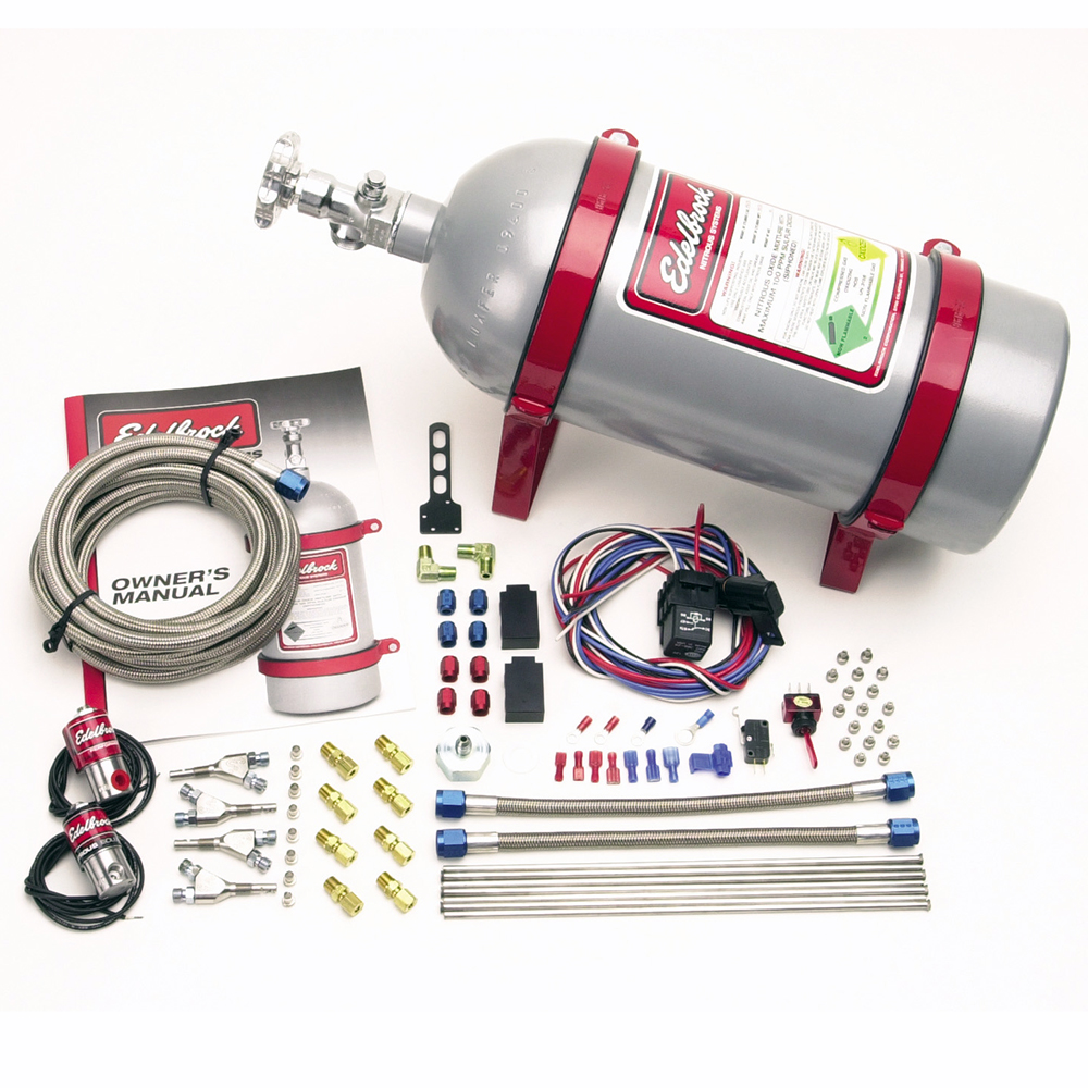 These nitrous bottle kits include an Edelbrock aluminum or polished bottle along with standard, quick-release or polished billet aluminum bottle brackets, plus a 14-foot 6AN supply line and bottle adapter. Match one of these kits with a direct port nitrous kit for a complete system.
