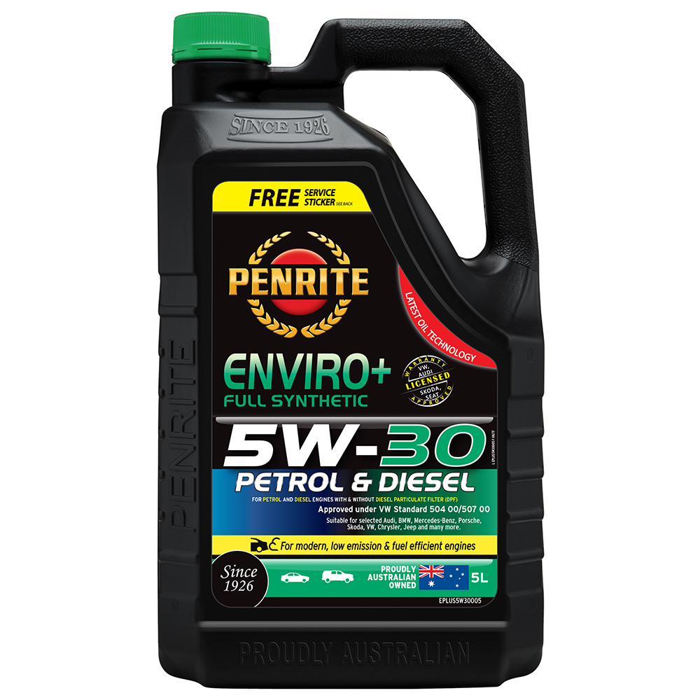 Oil 5W30 (1 Litre) Enviro+ full synthetic modern 4, 6 & 8 cylinder petrol & light duty diesel engines with DPF, FSI/TSI & TDI where ACEA C3 is specified Penrite EPLUS5W30001