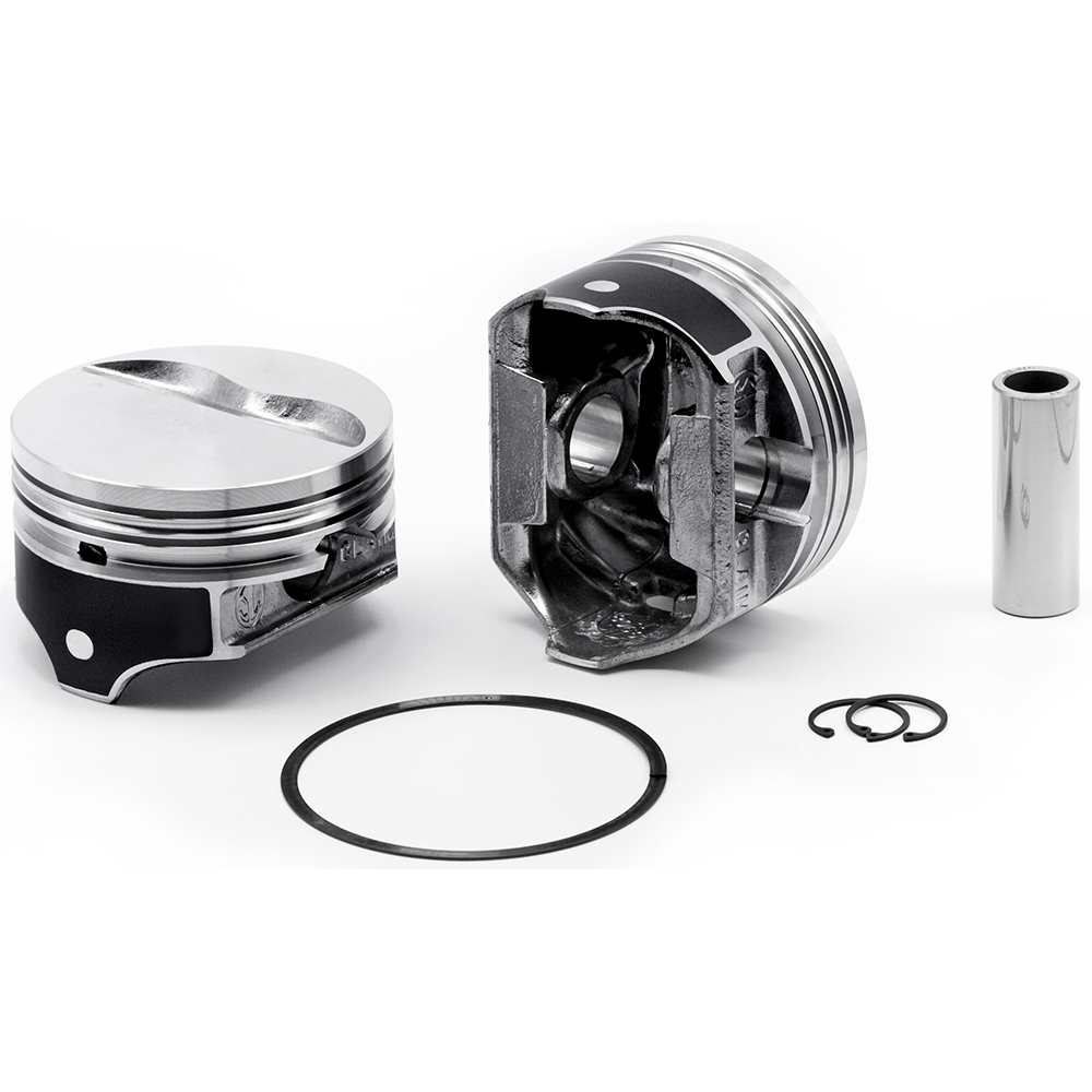 Piston set Chev 350ci flat top 1.265 compression height flat top 2 valve pocket suit 6.0" rod 4.030 bore 5/64 5/64 3/16 oil hypereutectic Keith black series
