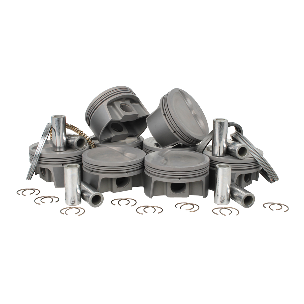 Piston set Chev 383 dish top forged 1.425 compression height 4.030 bore 5.7 rod complete with file fit rings Mahle -16cc dish comes with file fit rings circlips and pins 930210230