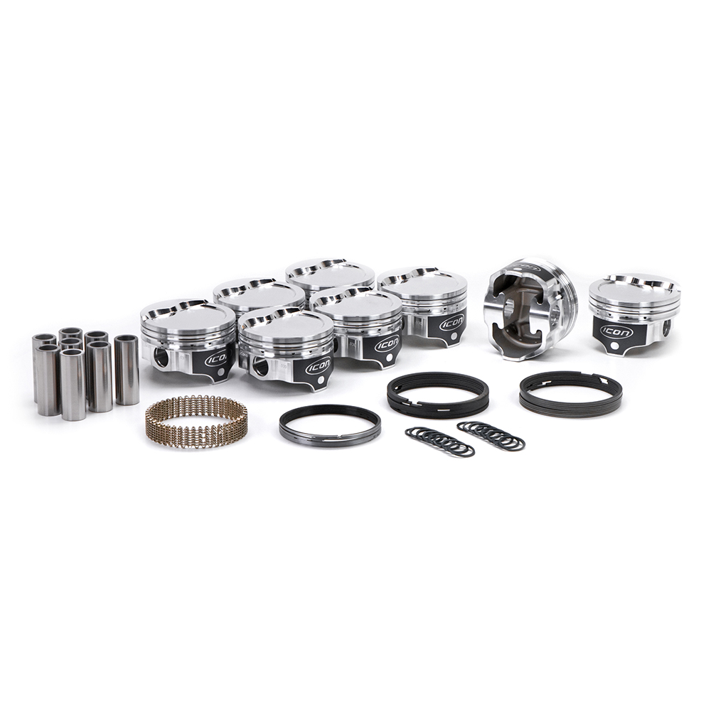 Piston set Ford 393ci Windsor SB V8 1.612" compression height 4.060" bore -28cc dish top Icon forged series (includes rings) Icon IC848KTD.060