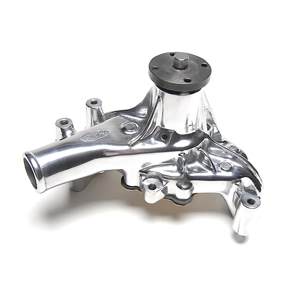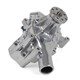 Water pump Chev 305, 350 SB V8 1969-87 long style approx 175mm from flange face to base 3rd hole next to foot threaded for power steering mounting, heavy duty bearings & seals, 8 blade cast alloy anti-cavitation impeller, Aluminium Polished Finish M&H